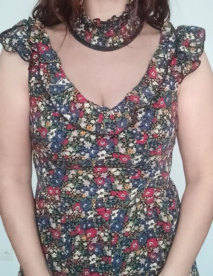 Robe longue fleurie décolleté voile taille 36 - photo numéro 2