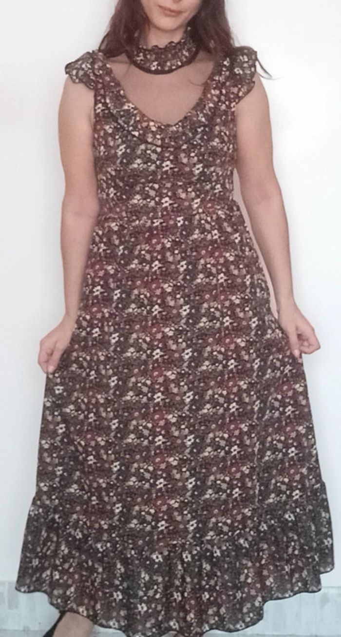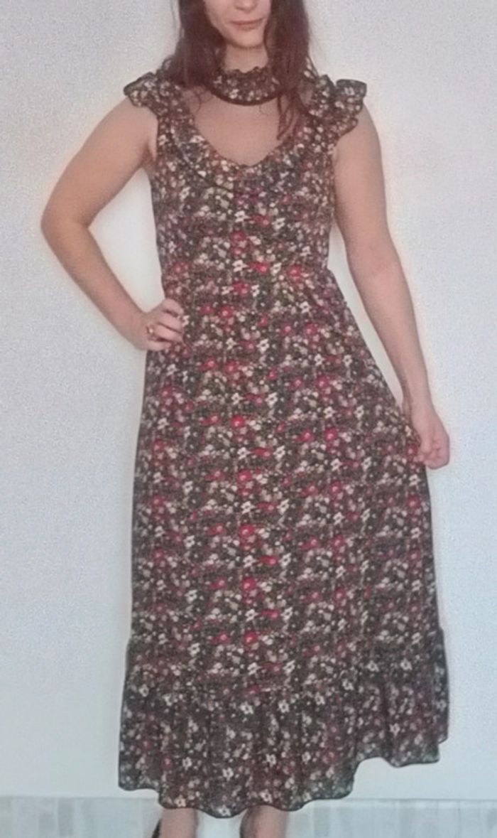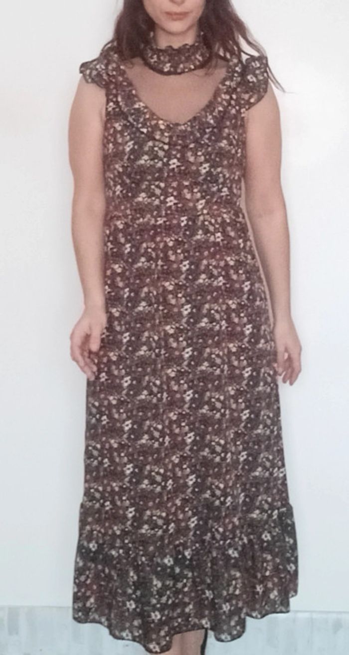 Robe longue fleurie décolleté voile taille 36 - photo numéro 1