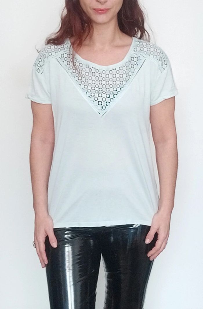 T-shirt turquoise crochet au décolleté taille 42 - photo numéro 1