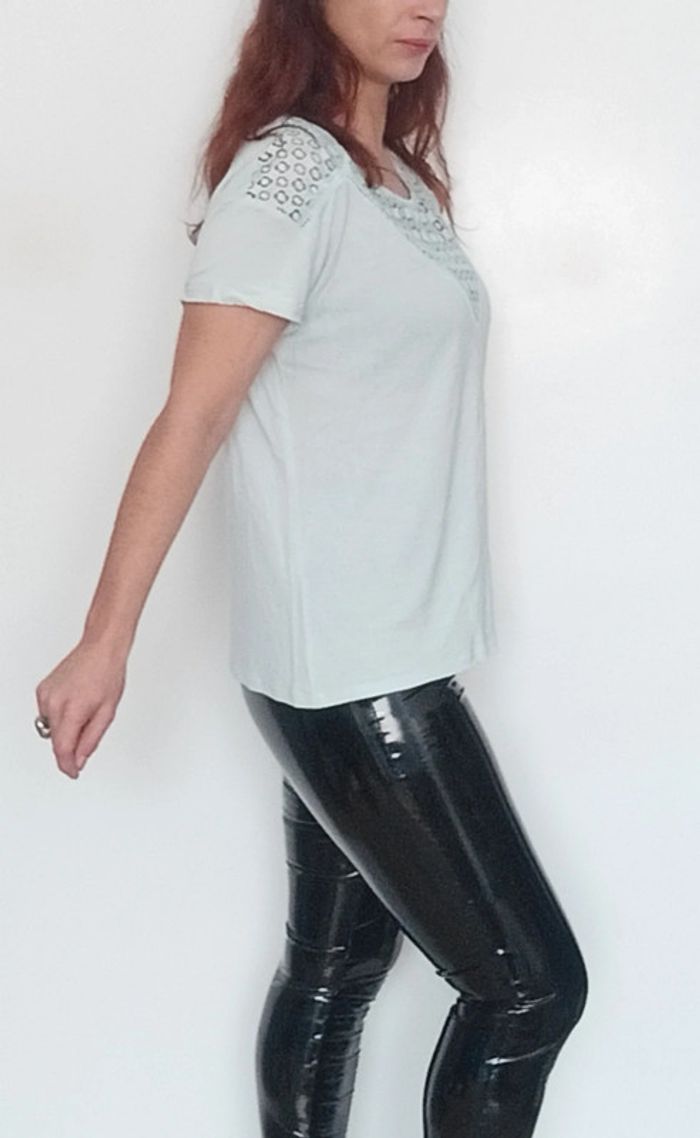 T-shirt turquoise crochet au décolleté taille 42 - photo numéro 4