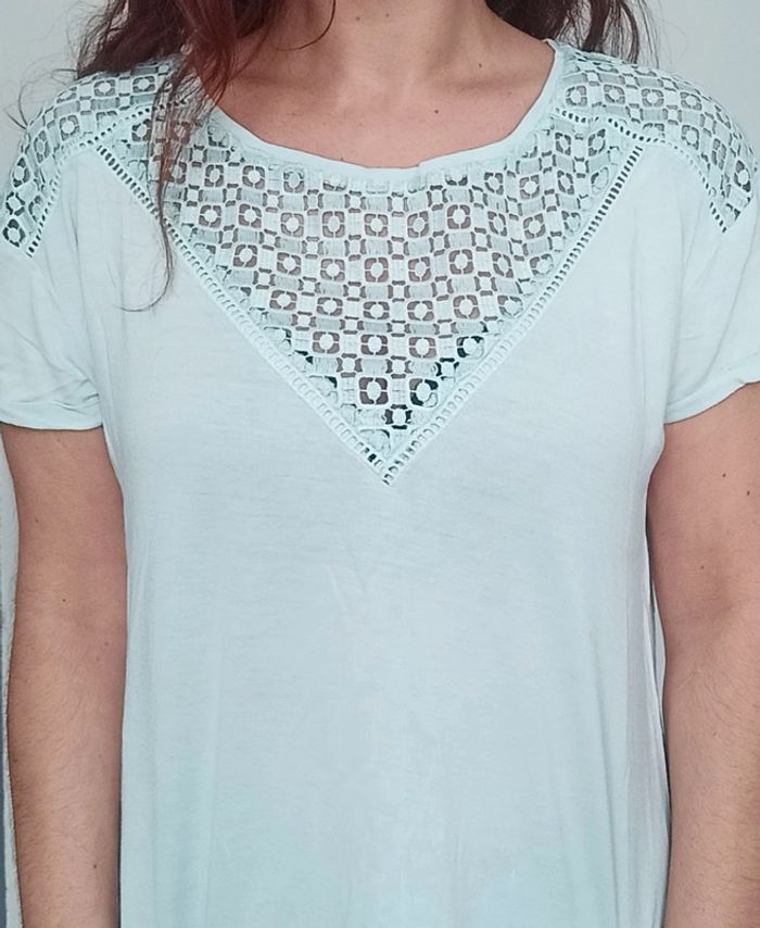 T-shirt turquoise crochet au décolleté taille 42 - photo numéro 3