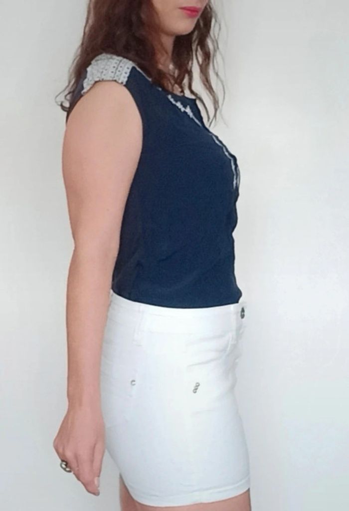 Regardez mes autres articles dans votre taille pour grouper les fdp #poupoupidou36 Blouse sans manches fluide unie marine détail broderie blanche, boutons au décolleté, casual et féminine facile a porter et a assortir #blousecasual36 #blouseete36 #hautmarine36 #blousemarine36 #blousesansmanches36 #hautcasual36