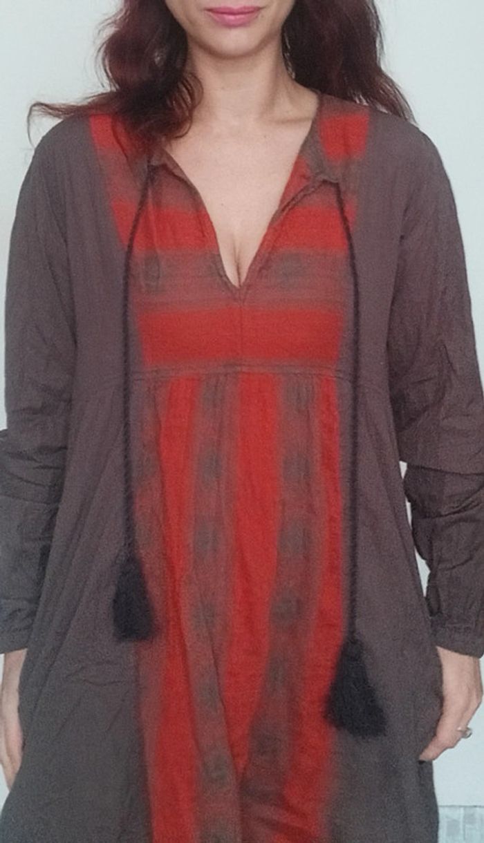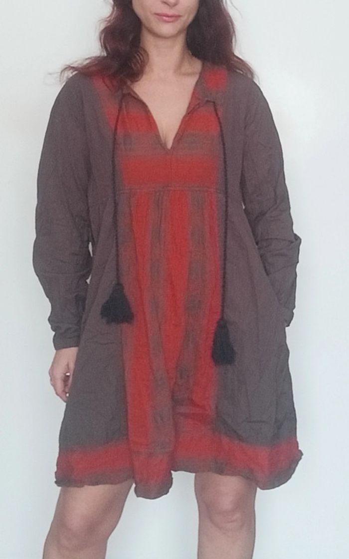 Regardez mes autres articles dans votre taille pour grouper les fdp #poupoupidouxl Robe longueur genoux manches longues, décolleté en v, matière type lin, marron et orange, style ethnique casual boheme, confortable et feminine #robecasualxl #robeethnique42 #robecasual42 #robemisaison42 #robeboheme42 robeethniquexl #robelin42