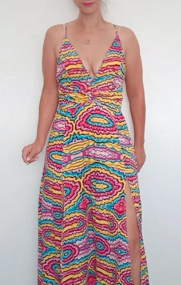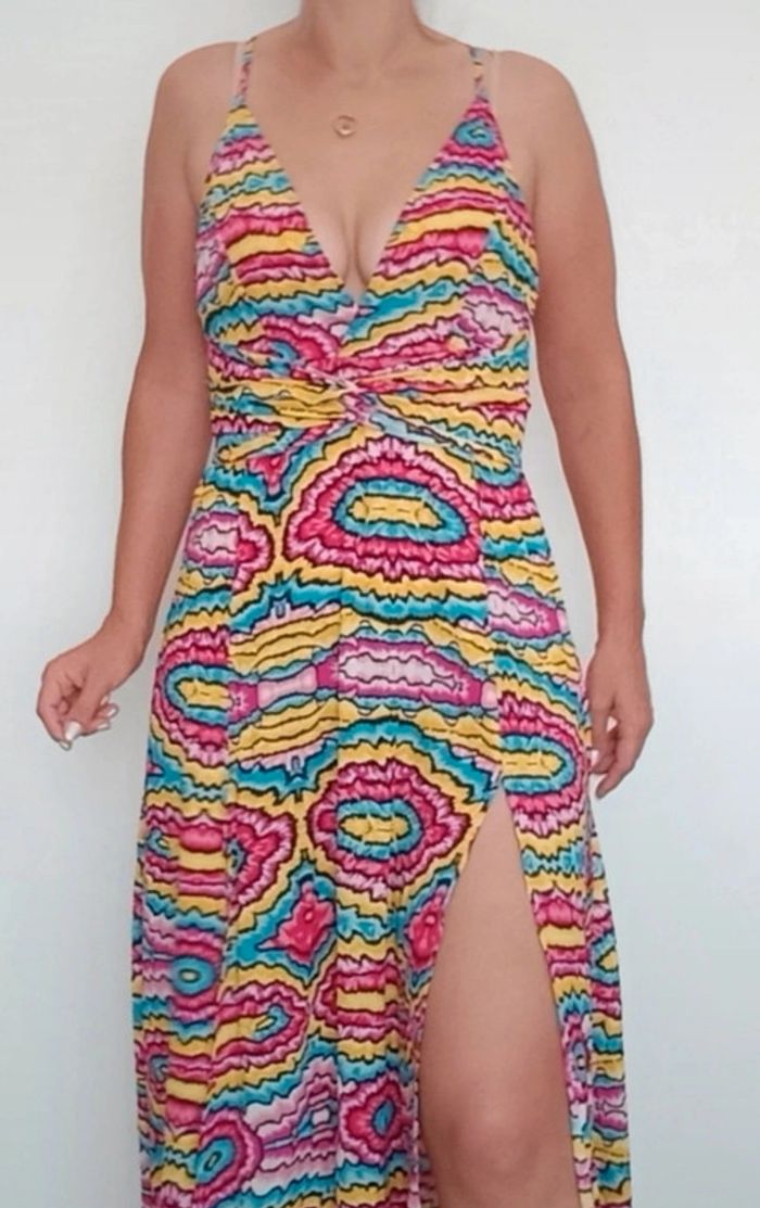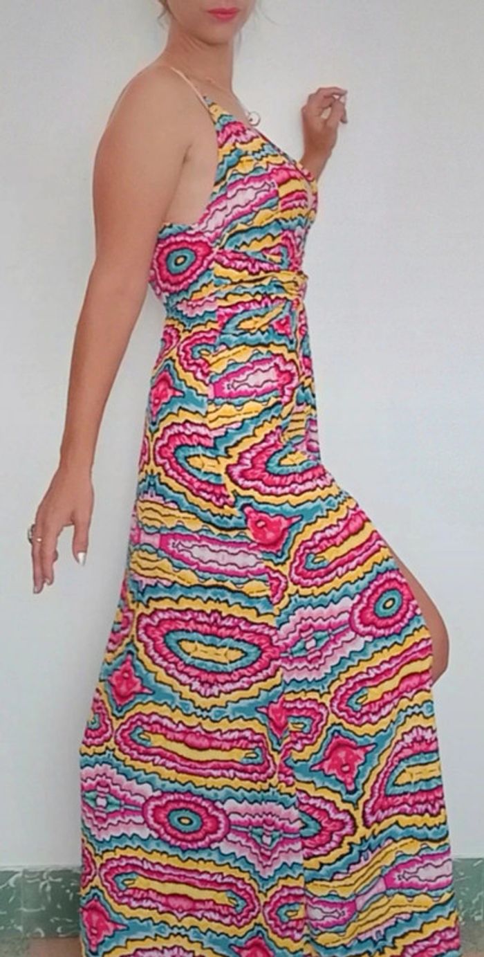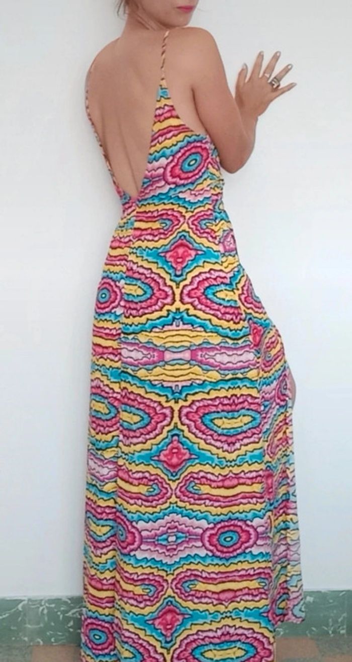 Robe maxi longue décolletée et dos nu colorée 36 - photo numéro 2
