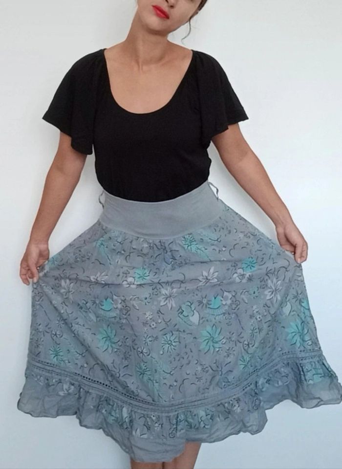 Jupe mi longue fleurie casual neuve taille unique - photo numéro 2