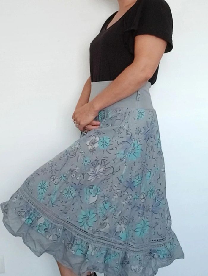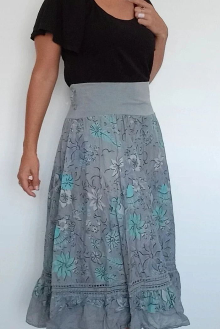 Jupe mi longue fleurie casual neuve taille unique - photo numéro 7
