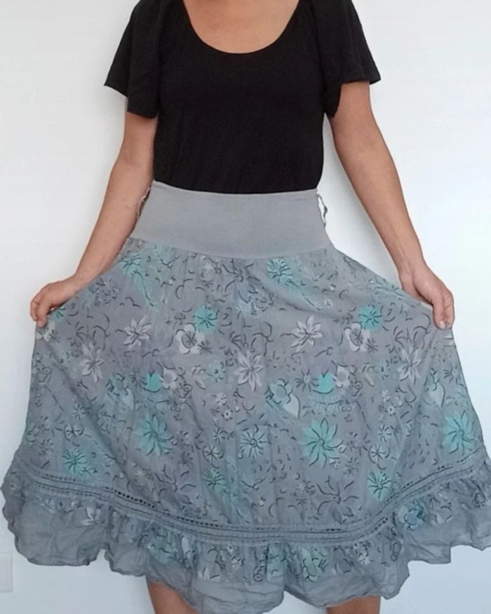 Jupe mi longue fleurie casual neuve taille unique - photo numéro 1