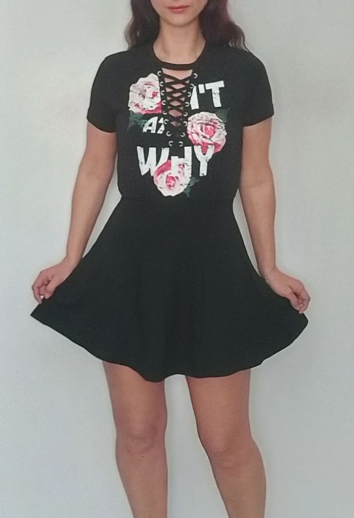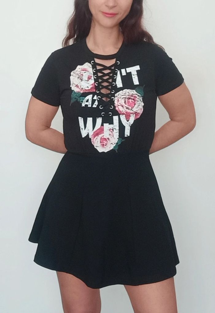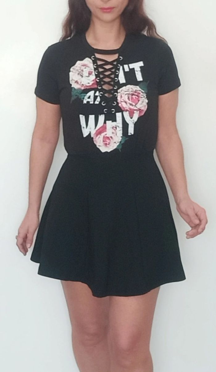 Regardez mes autres articles dans votre taille pour grouper les fdp #poupoupidou34 Robe courte patineuse unie noire fleurie au buste, manches courtes, matière t-shirt confortable, détail laçage au décolleté, sexy et romantique #robelacee34 #robelacage34 #robefeminine34 #robepatineuse34 #robesexy34 #robesexyxs #robenoirefleurie34 #robe34 #robenoire34