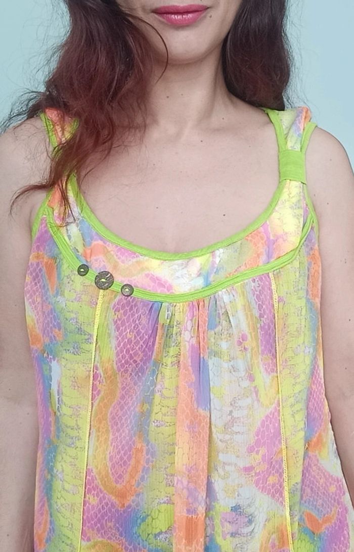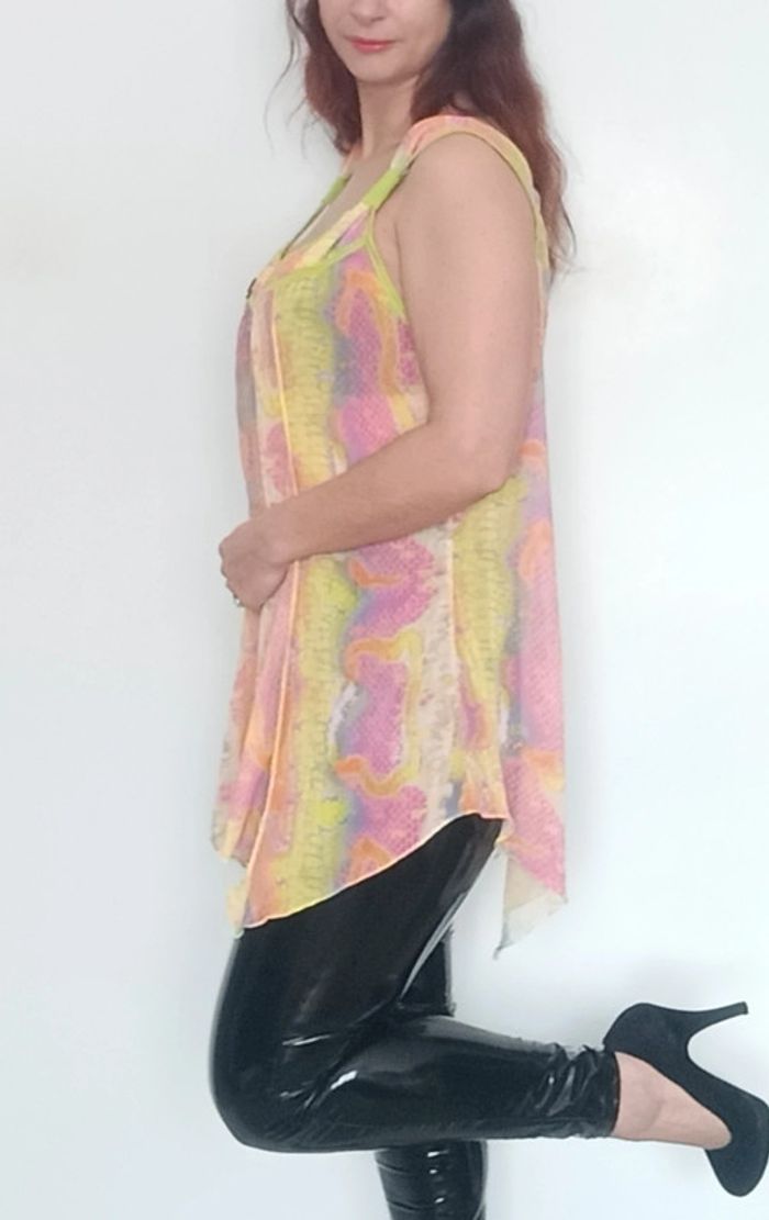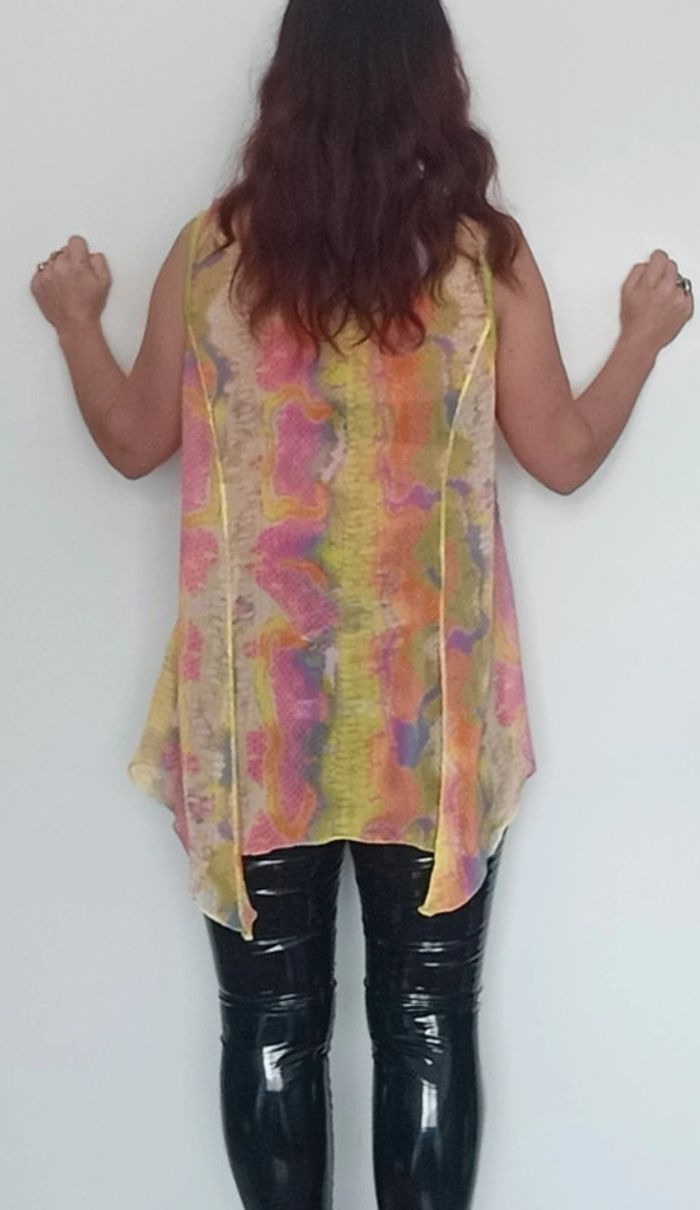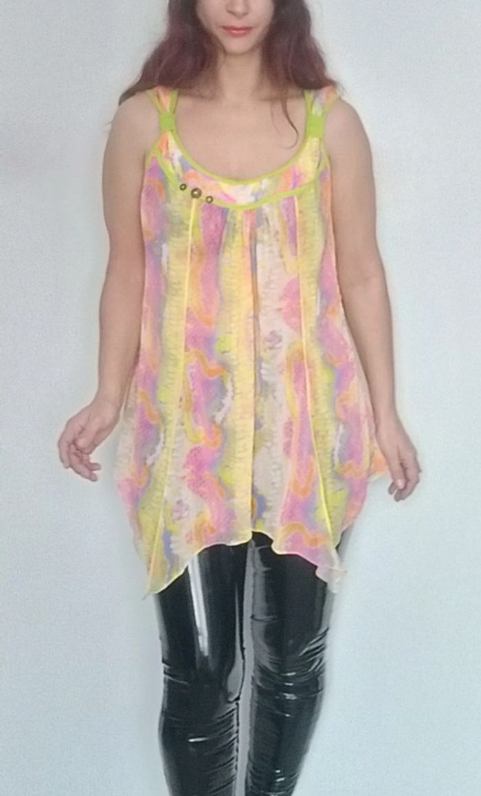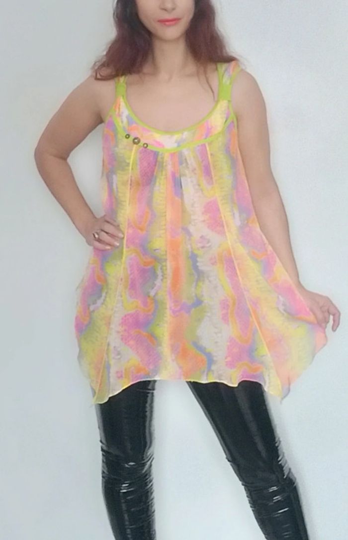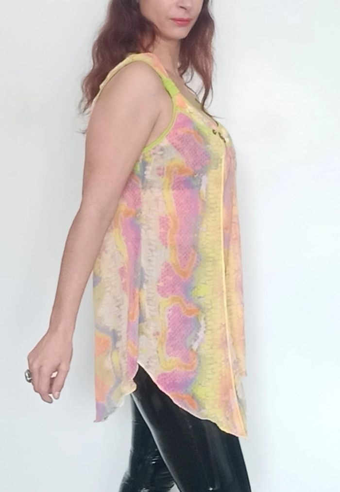Regardez mes autres articles dans votre taille pour grouper les fdp #poupoupidoutu Robe tunique voile asymétrique fluide évasée, dans manches, large encolure et décolleté féminin, multicolore rainbow superbe sur peau bronzée, grand taille unique à partir du 38/40, confortable, féminine et parfaite pour rehausser une tenue #tunique #tuniquecoloree #tuniquerainbow #tuniquefluo #tuniqueasymetrique #tuniquecoloree #tuniquevoile #tuniqueete #tuniquefluide