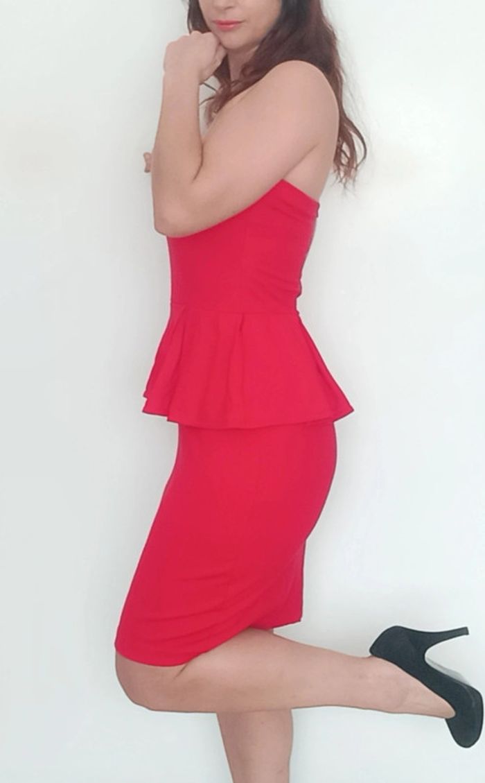 Robe bustier péplum rouge Mango taille 38 - photo numéro 3