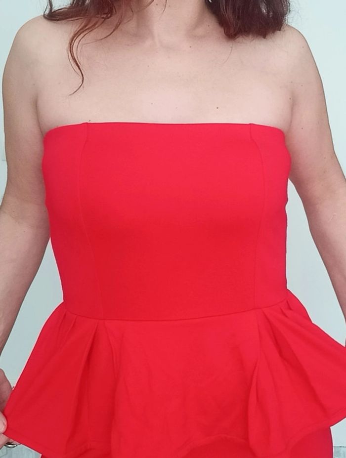 Robe bustier péplum rouge Mango taille 38 - photo numéro 2