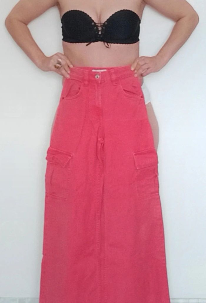 Jean large wide leg framboise Bershka taille 32 - photo numéro 1