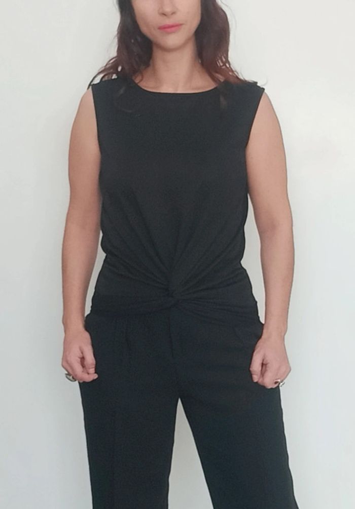 Regardez mes autres articles dans votre taille pour grouper les fdp #poupoupidoutu Haut sans manches uni noir, nouer devant, chic et confortable, matière fine crepe, féminin, facile a assortir #hautnoir #hautnoueb#hautnoeuddevant #hautnoué #hautchic #blousesansmanchesnoire #hautsoiree #hautfin #hautcrepe