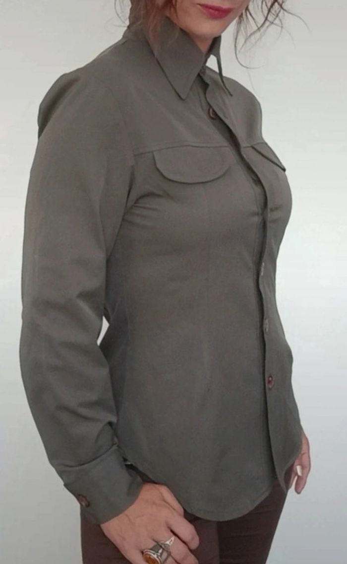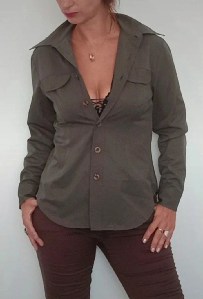Regardez mes autres articles dans votre taille pour grouper les fdp #poupoupidou38 Chemise semie rigide en stretch unie kaki grise, avec boutons, féminine et facile a assortir, belle qualité, idéal travail #chemise38 #chemisestretch38 #chemisekaki38 #chemisierstretch38 #chemisetravail38