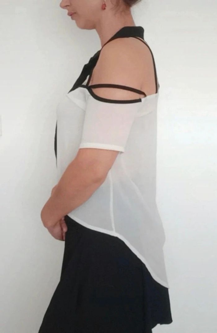 Chemise blanche et noire épaules nues bandage tu - photo numéro 5
