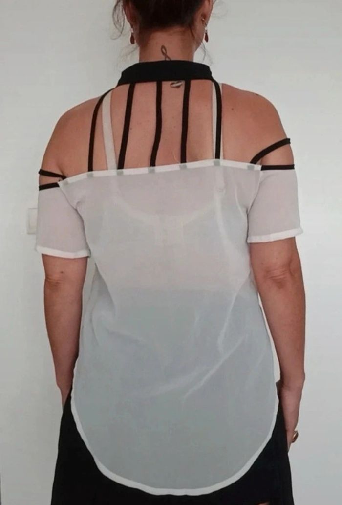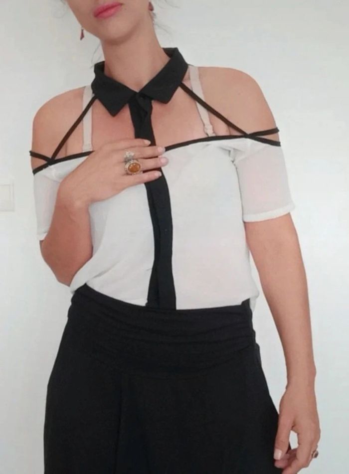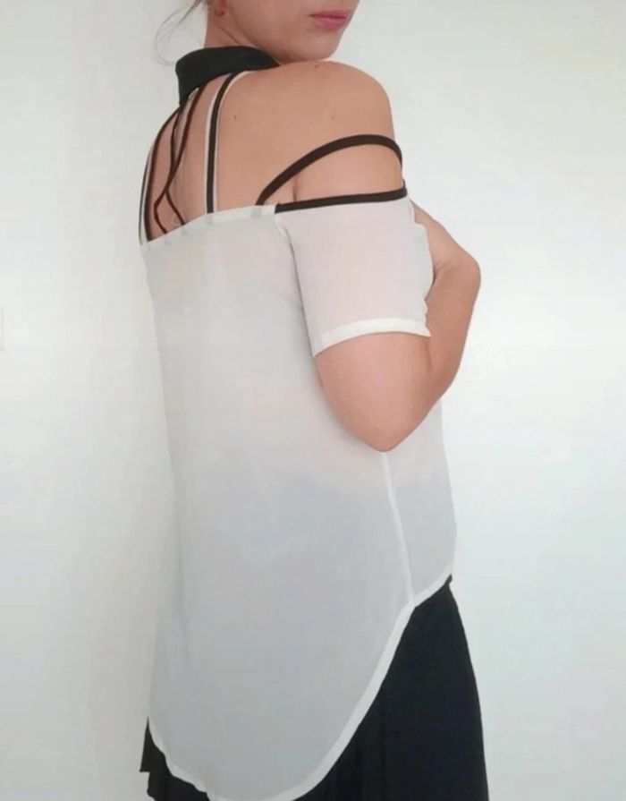 Chemise blanche et noire épaules nues bandage tu - photo numéro 1