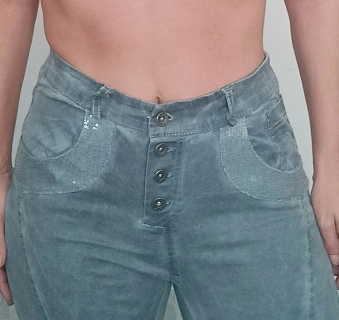 Jean slim stretch gris poche sequins taille 36 - photo numéro 4