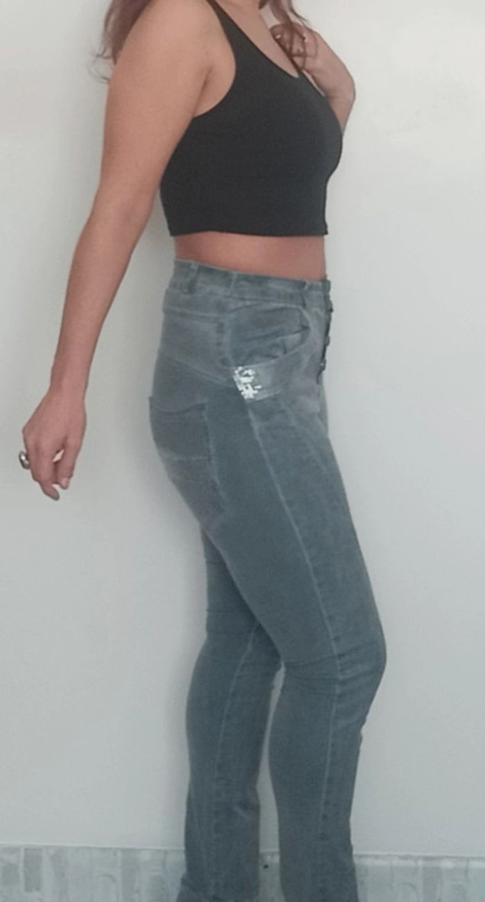 Jean slim stretch gris poche sequins taille 36 - photo numéro 3