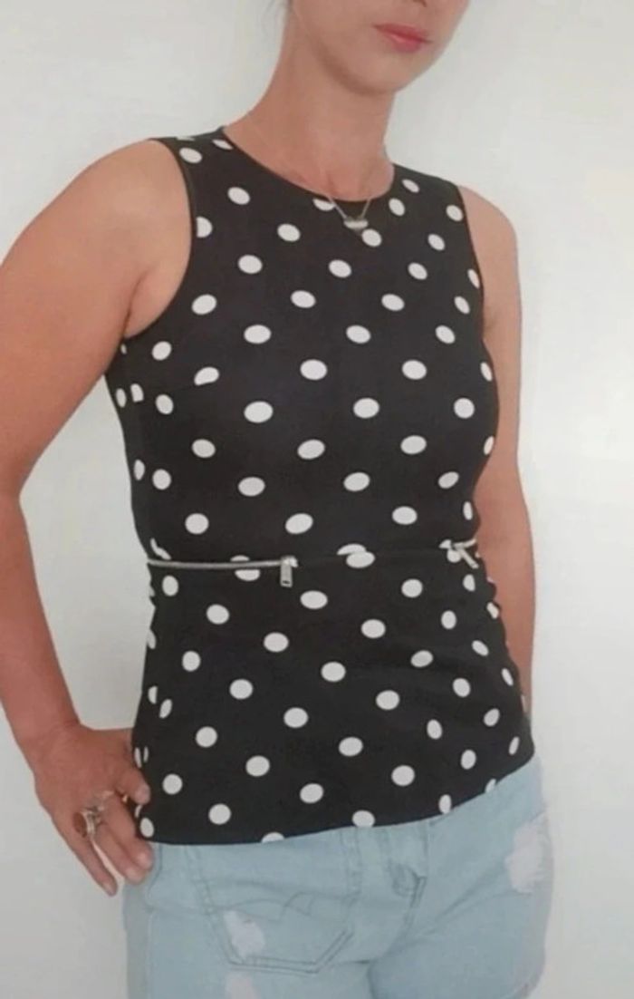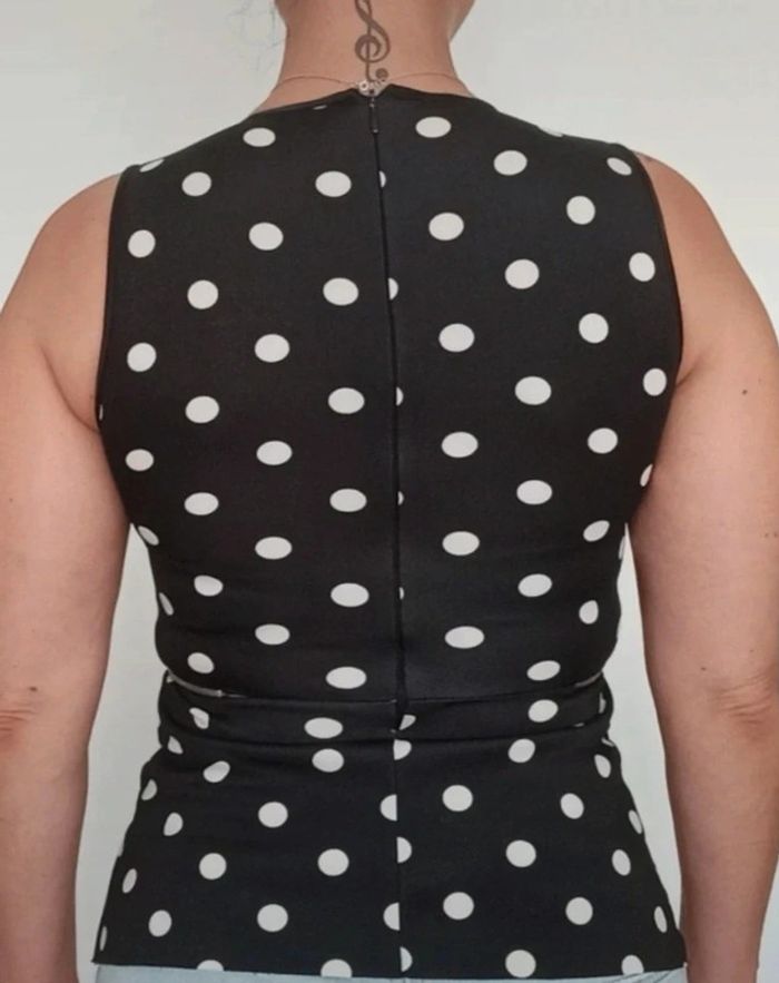 Regardez mes autres articles dans votre taille pour grouper les fdp #poupoupidou36 Top sans manche forme légèrement péplum, marque Zara noir a pois blanc style rétro pinup, moulant, matière épaisse de qualité, féminin et facile a assortir #topzara36 #topapois36 #toppinup36 #topretro36 #topchic36 #hautzara36