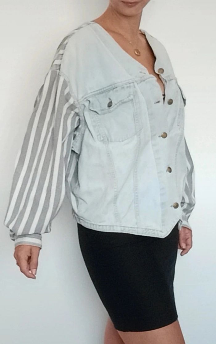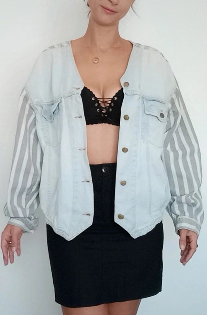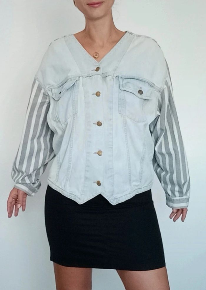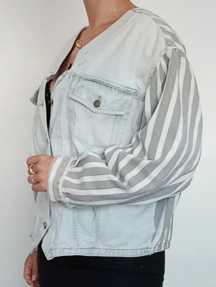 Regardez mes autres articles dans votre taille pour grouper les fdp #poupoupidou38 Veste en jean clair vintage, loose, détail manches rayées, très sympa, intemporelle #vestejeanvintage38 #vestevintage38 #pepitevintage38 #vestejean38 #vestejeans38 #vestejeansvintage #vestejeanvintage
