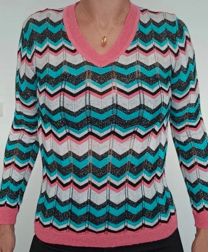 Regardez mes autres articles dans votre taille pour grouper les fdp #poupoupidou36 Pull fin col V, très coloré style aztèque et pailleté, confortable, féminin et facile a assortir #pullfin36 #pull36 #pullcolore36 #pullpaillete36 #pullpaillettes36 #pullazteque36 #pullsympa36 #pullmadeinitaly