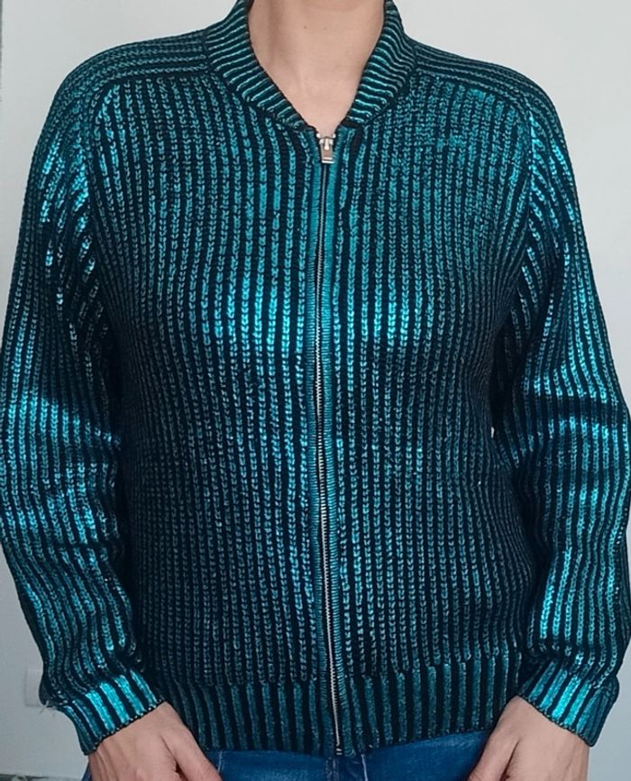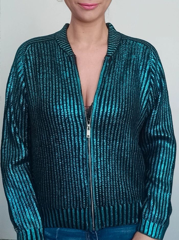 Veste gilet zippée brillante sequins taille 36 - photo numéro 2