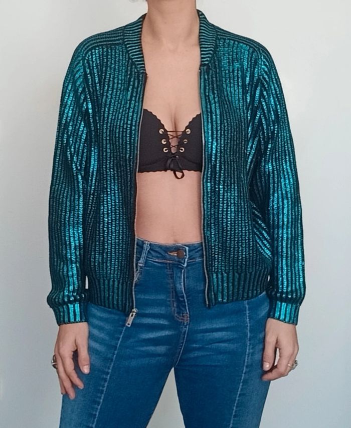 Regardez mes autres articles dans votre taille pour grouper les fdp #poupoupidou36 Veste façon gilet pull zippée idéale événement, toute doublée sequins bleu émeraude, très brillante, confortable, féminine et chic #vestesoiree36 #vestezippee36 #vestesequins36 #vestebrillante36 #blousonsequins36 #pullsequins #giletsequins #cardigansequins #cardigansoiree #giletsoiree36 #giletbrillant36 #giletzippe36 #pullsequins36 #pullbrillant36