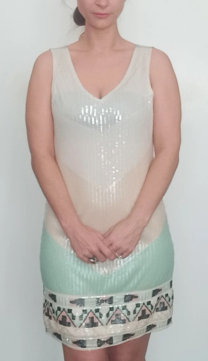 Regardez mes autres articles dans votre taille pour grouper les fdp #poupoupidou40 Robe de soirée sans manche, mi longue droite décolleté léger en V, toute doublée sequins devant, couleurs pastel, beaucoup d effet, très chic et féminine #robesoiree40 #robesequins38 #robechic40 #robefetes40 #robeevenement40 #robebrillante40 #robesoireepastel40 #robeceremonie40 #robe40 #robecocktail40