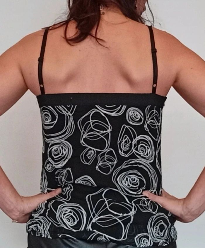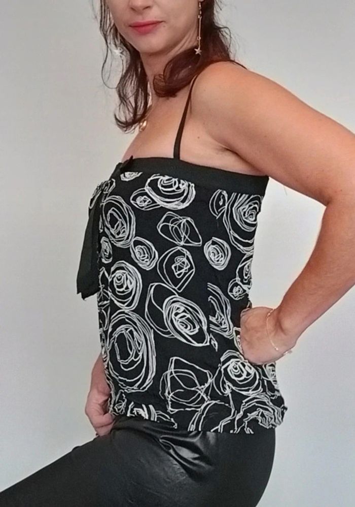 Regardez mes autres articles dans votre taille pour grouper les fdp #poupoupidou38 Top façon bustier avec très fines bretelles, motif roses spirales, noir et blanc, féminin et facile a assortir #top38 #topbustier38 #topdebardeur38 #topnoiretblanc38 #topfeminin38 #toprinascimento38