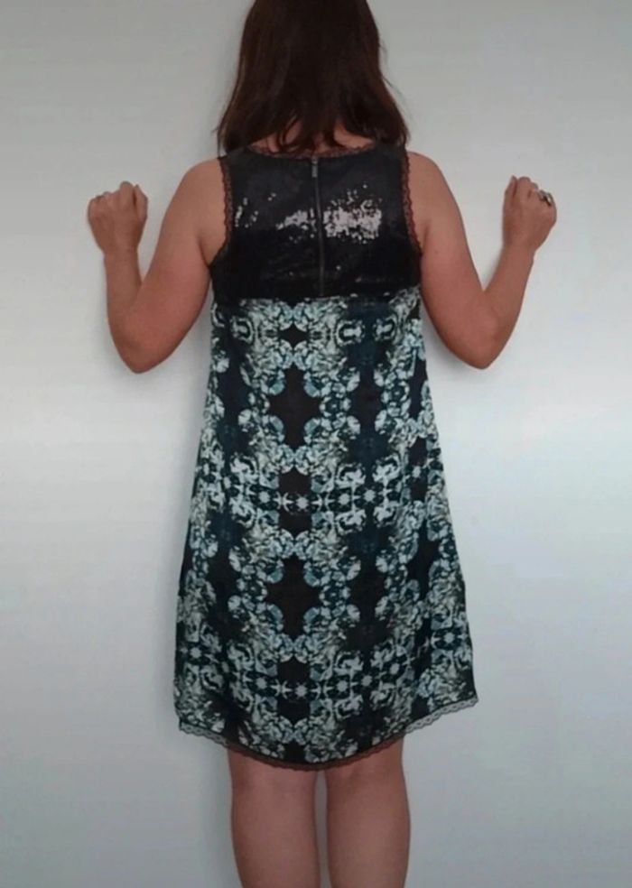 Regardez mes autres articles dans votre taille pour grouper les fdp #poupoupidou36 Robe courte fluide très douce, chic et féminine, motif bijoux , sequins noirs en haut du buste, style baroque, matière 100 % soie ( doublure polyester), idéale soirée ou événement #robesoie36 #robesoiree36 #robeasymetrique36 #robechic36 #robedouce36 #robebijoux36 #robefluide36