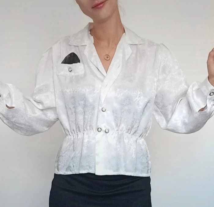 Regardez mes autres articles dans votre taille pour grouper les fdp #poupoupidoutu Chemisier satiné vintage uni blanc avec pochette noir a la poche, boutons perles blanches, doux, confortable et féminin idéal événement,fluide forme légèrement péplum élastiquée a la taille #chemisiersoiree #chemisiervintage #chemisierchic #chemisiersatine #chemisevintage #chemisesoiree #chemisesatin #chemisechic #chemiseevenement #pepitevintage