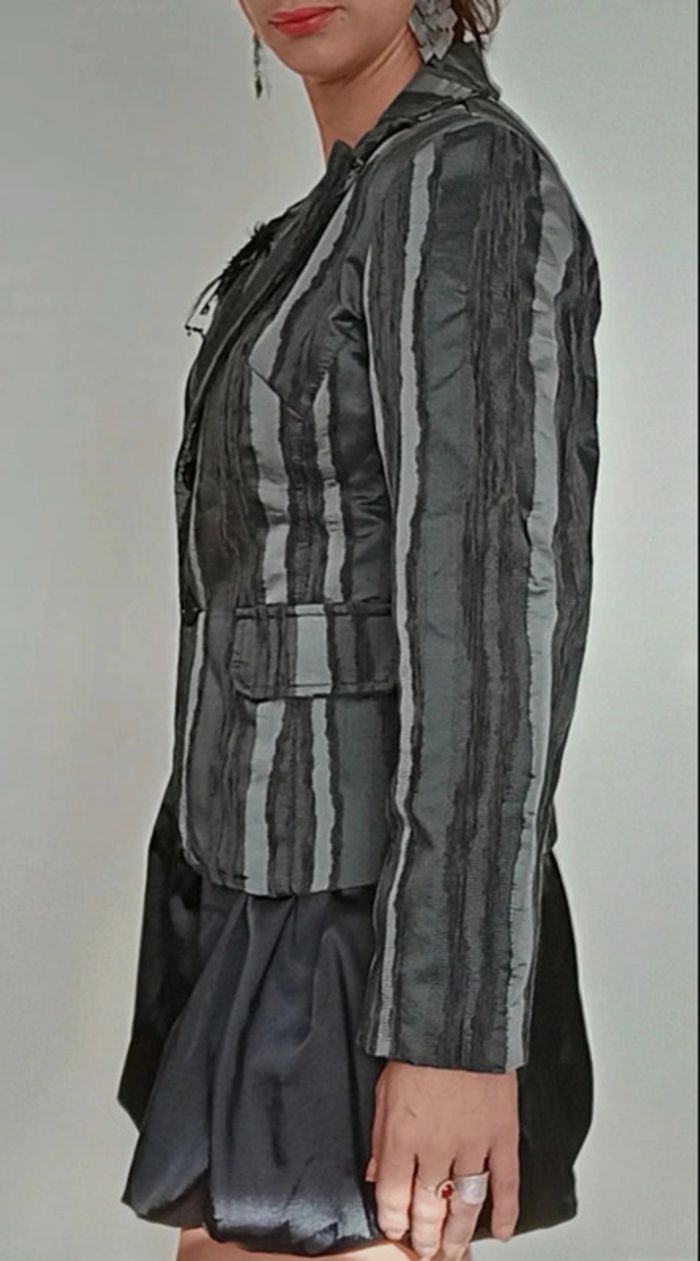 Veste blazer chic soirée dentelle et plume taille 40 - photo numéro 7