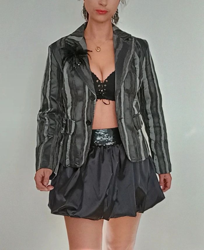 Veste blazer chic soirée dentelle et plume taille 40