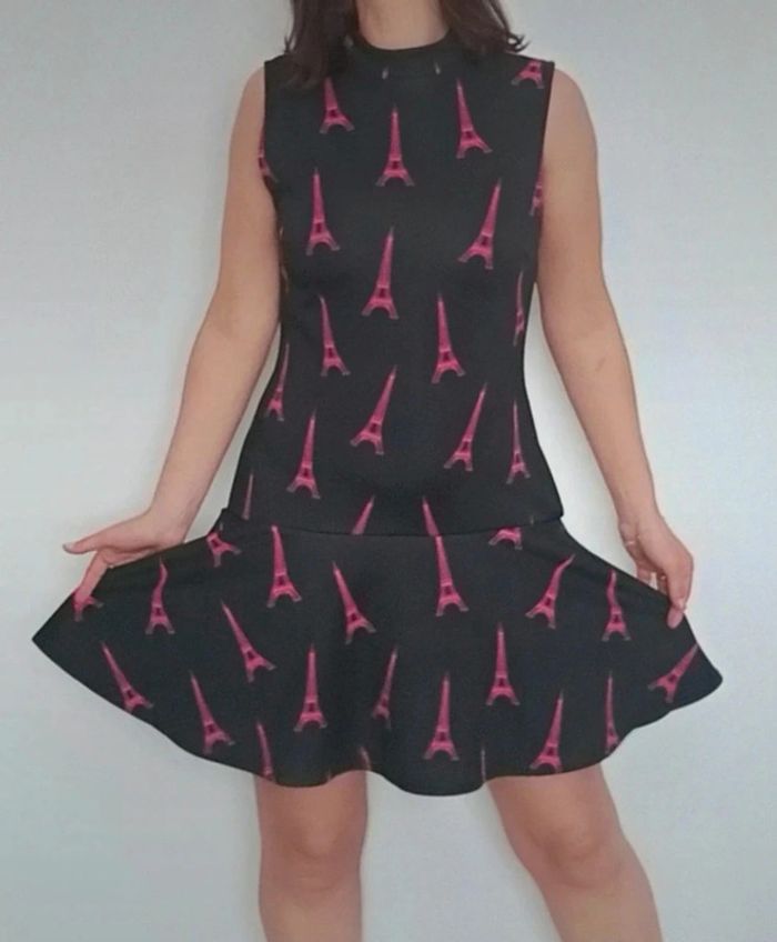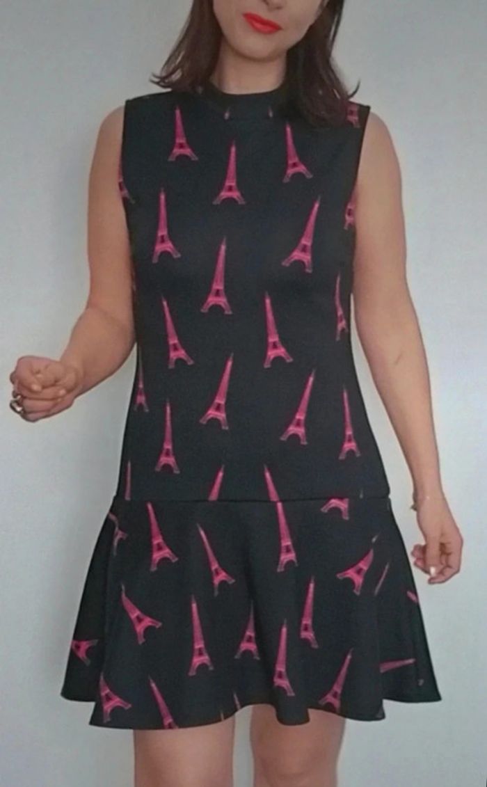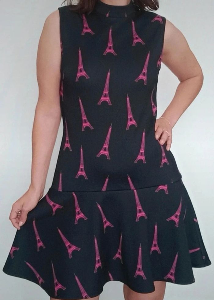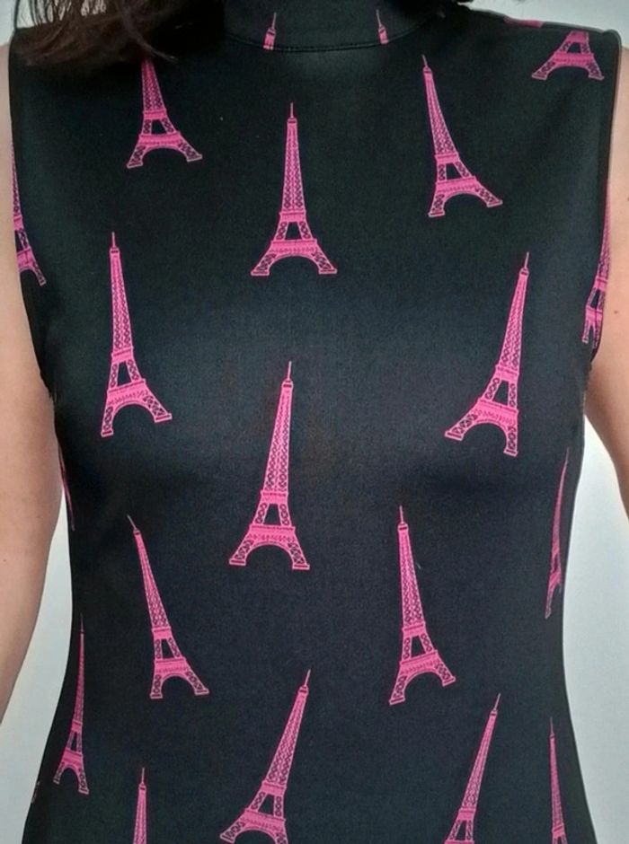 Regardez mes autres articles dans votre taille pour grouper les fdp #poupoupidou38 Robe sans manches style pinup , forme trapèze / patineuse chic et originale avec ses tours Eiffel roses, matière épaisse de qualité #robepinup38 #robeprintemps38 #robechic38 #robetrapeze38 #robehm38 #robenoireetrose38