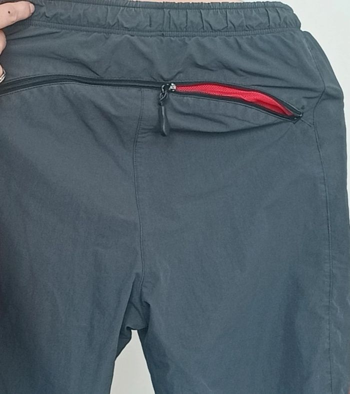 Pantalon de sport jogging homme doublé résille transparente pour l aération, scratch aux chevilles, fermeture éclair au derrière, taille élastiquée, uni gris, doublure rouge #pantalonsporthomme38 #pantalonsporthommem #jogginghomme38 #jogginghommem #pantalondomyoshomme #pantalondecathlonhomme
