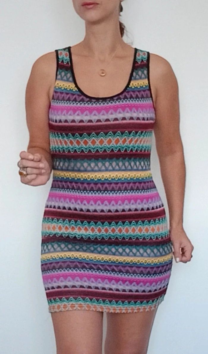 Mini robe broderies crochet multicolore taille 38 - photo numéro 1