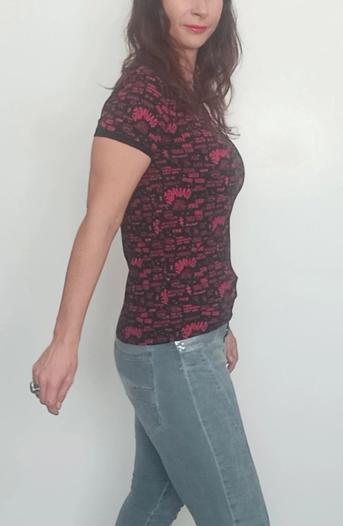 T-shirt à texte noir et rouge taille 36 - photo numéro 3