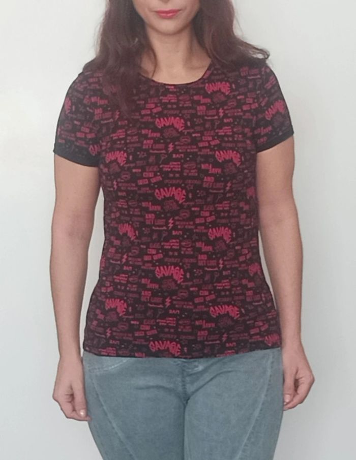 T-shirt à texte noir et rouge taille 36 - photo numéro 1