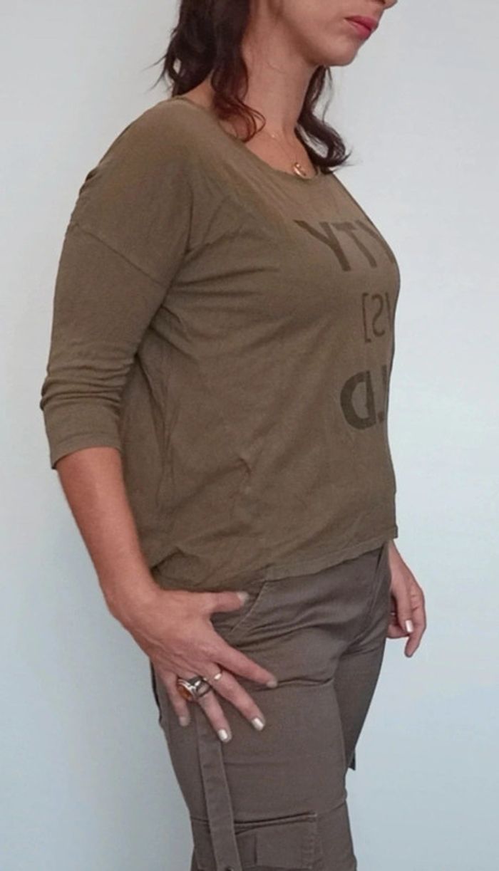 T-shirt à texte loose kaki taille 36 - photo numéro 3