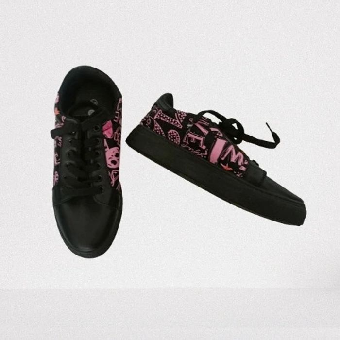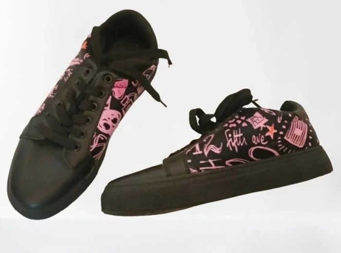 Baskets noir et inscriptions rose fluo 38 - photo numéro 1