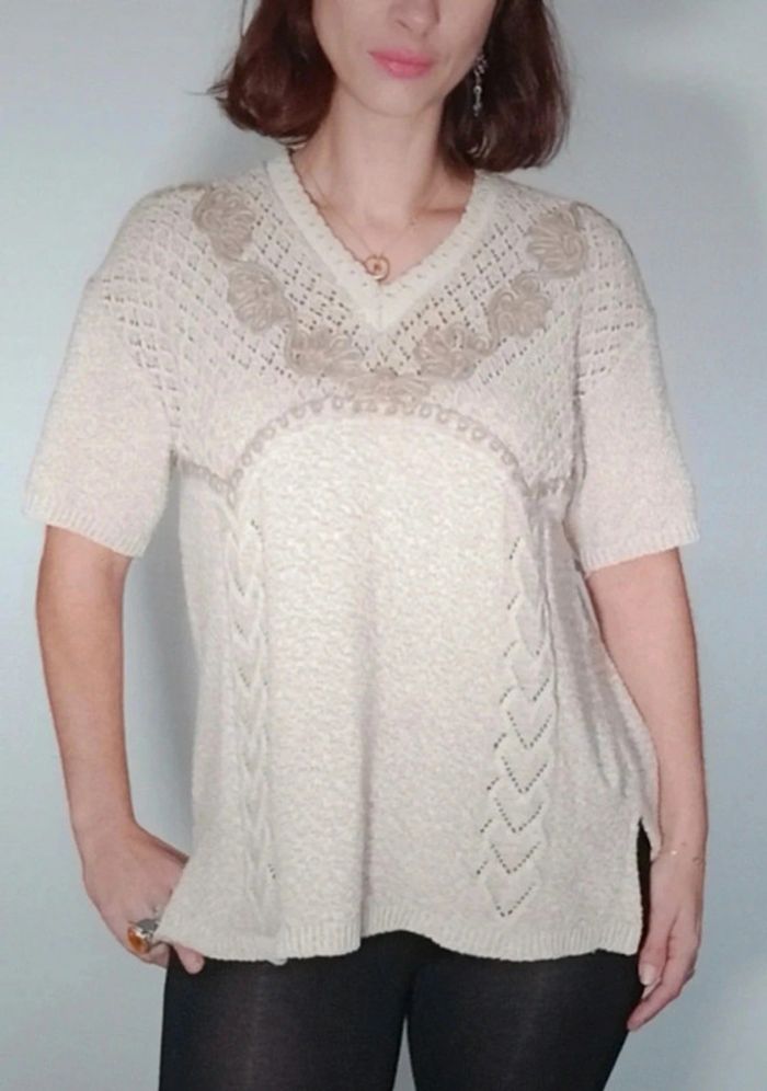Pull manches courtes beige vintage taille unique - photo numéro 2