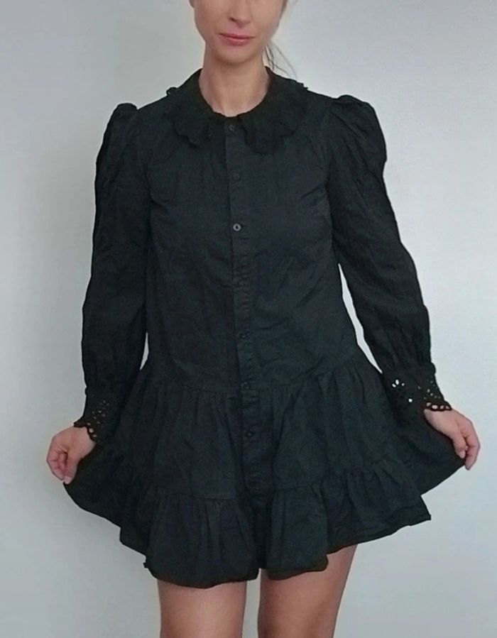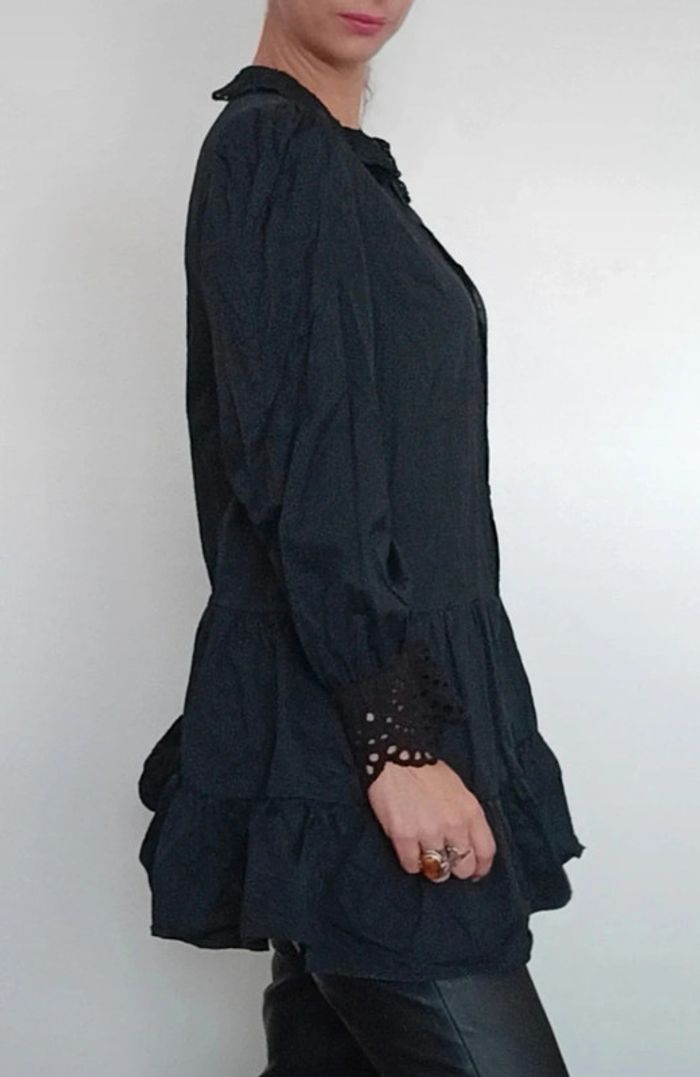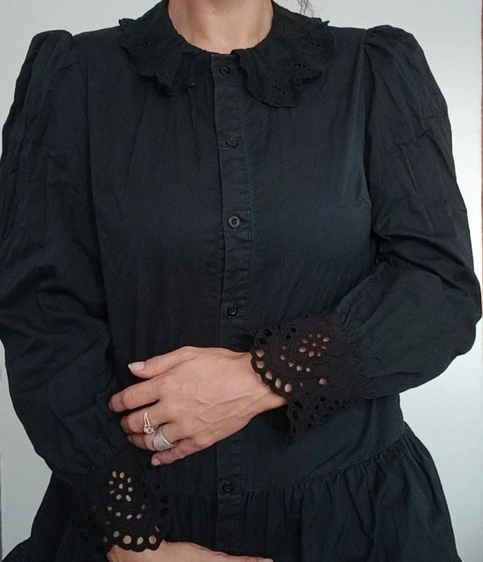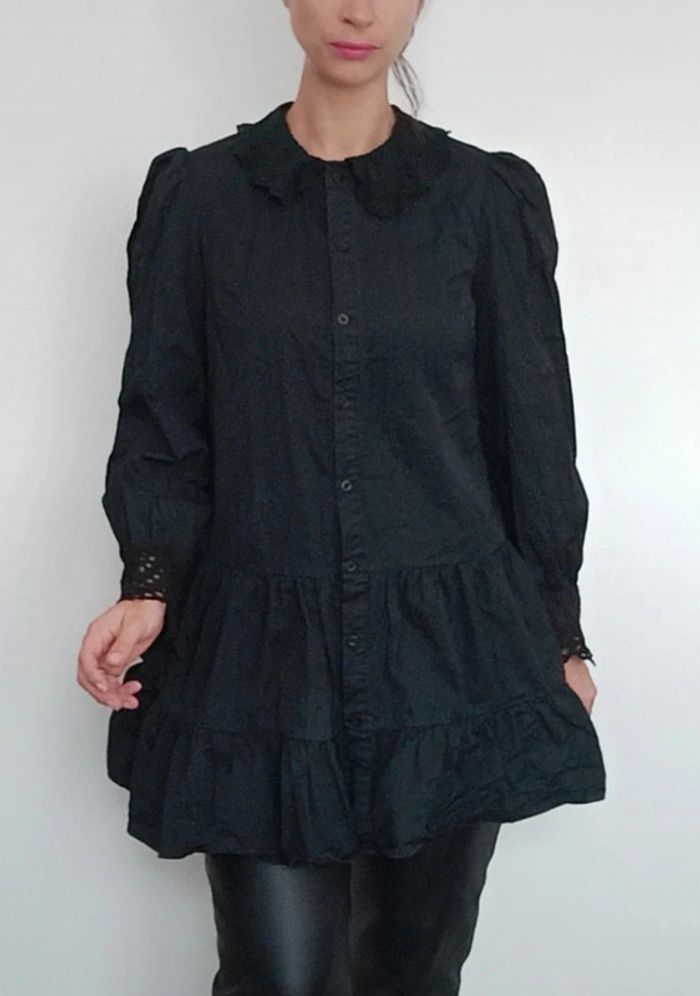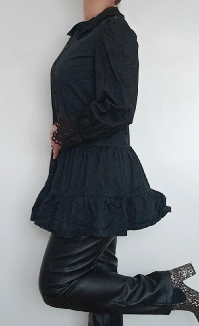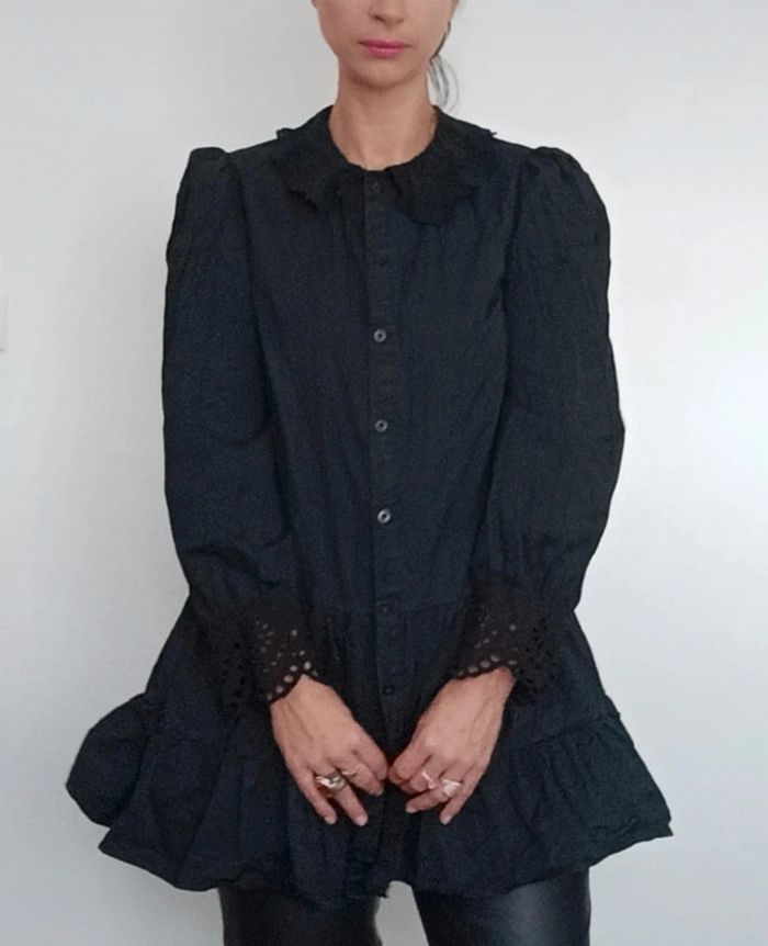 Regardez mes autres articles dans votre taille pour grouper les fdp #poupoupidou36 Belle robe chemise unie noire, manches longues dentelle/ crochet noir aux poignets, jupe courte évasée et bouffante, chic et féminine, originale style renaissance, à porter en robe ou en tunique ( je fais 1m69) #robechemise36 #robechemisenoire36 #petiterobenoire36 #robechemisenoire36 #robebaroque36 #robecasualchic36 #roberenaissance