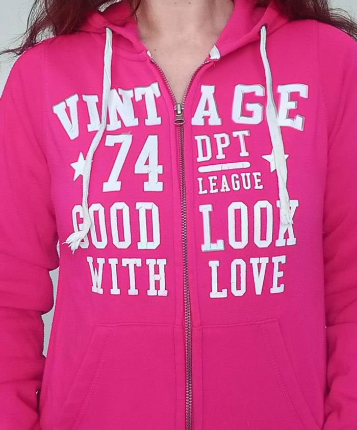 Sweat a capuche rose fushia Vintage taille 36 - photo numéro 7