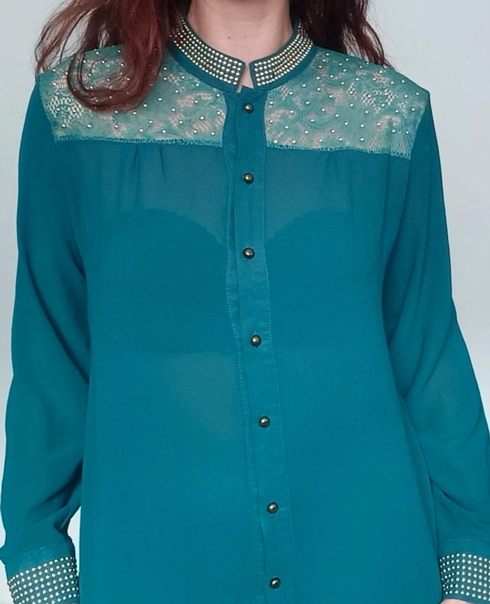 Chemisier émeraude dentelle et clous 38/40 - photo numéro 2