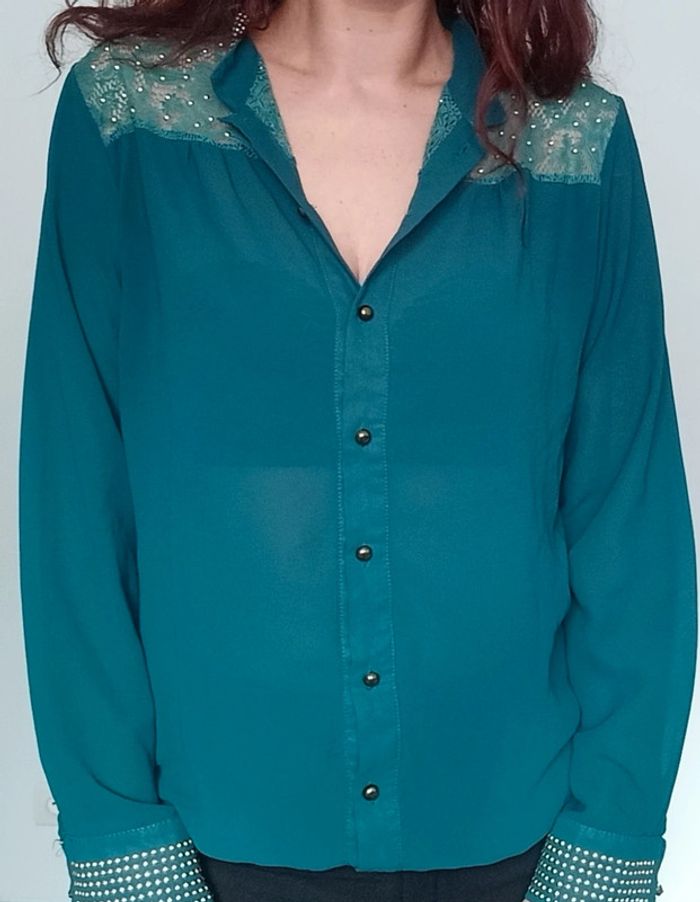 Chemisier émeraude dentelle et clous 38/40 - photo numéro 1