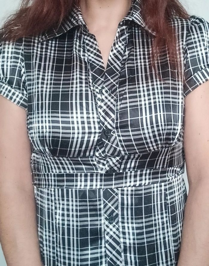 Chemisier satiné a carreaux chic taille 38 - photo numéro 1