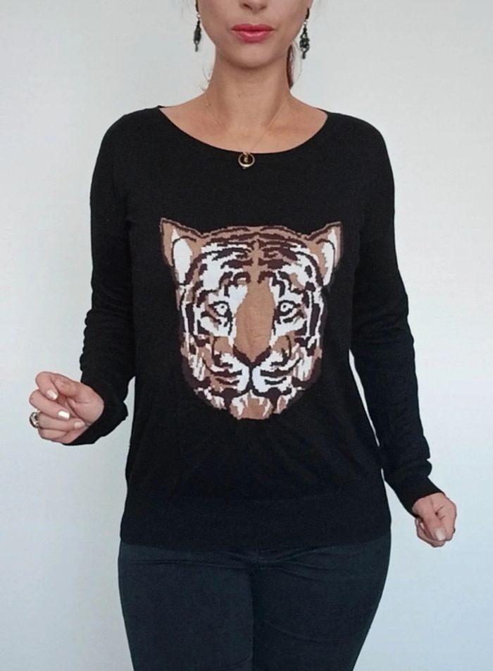 Joli pull noir casual motif tigre taille 38 - photo numéro 1