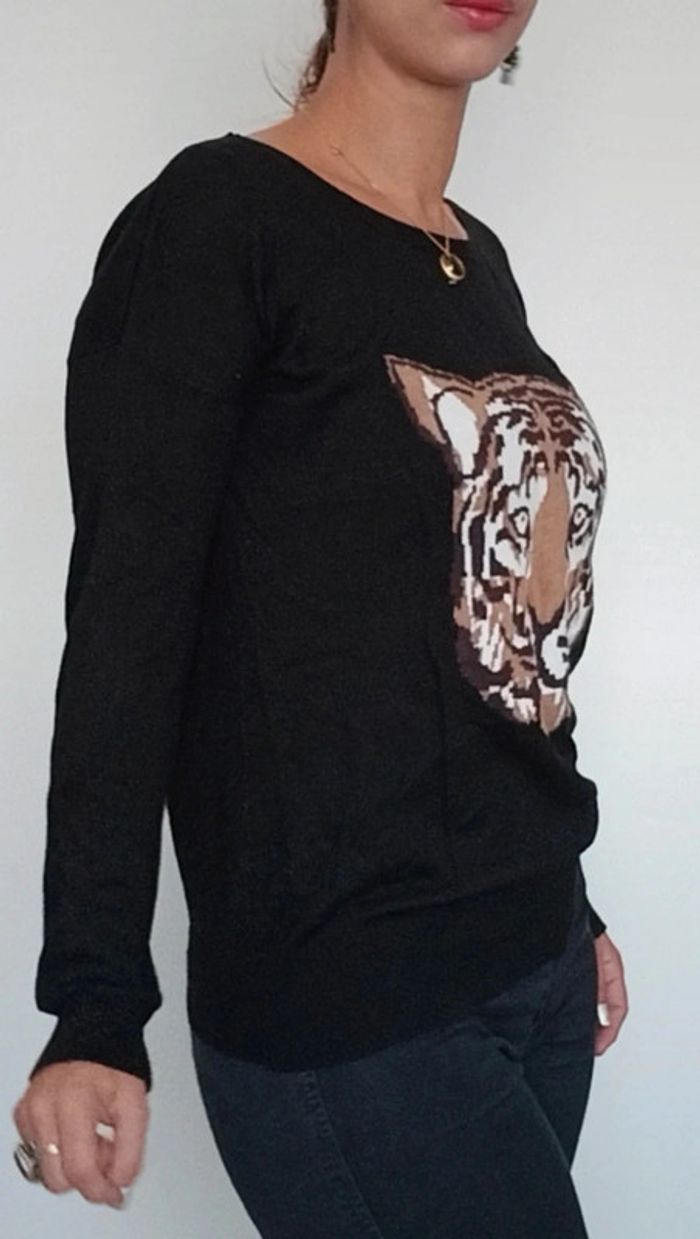 Joli pull noir casual motif tigre taille 38 - photo numéro 7