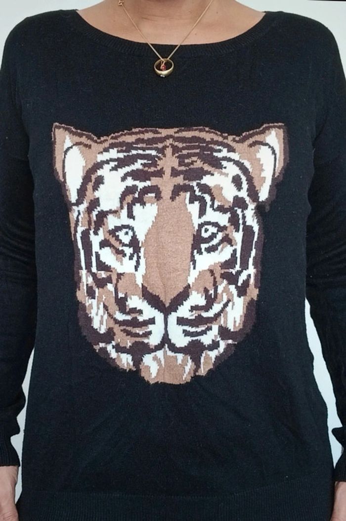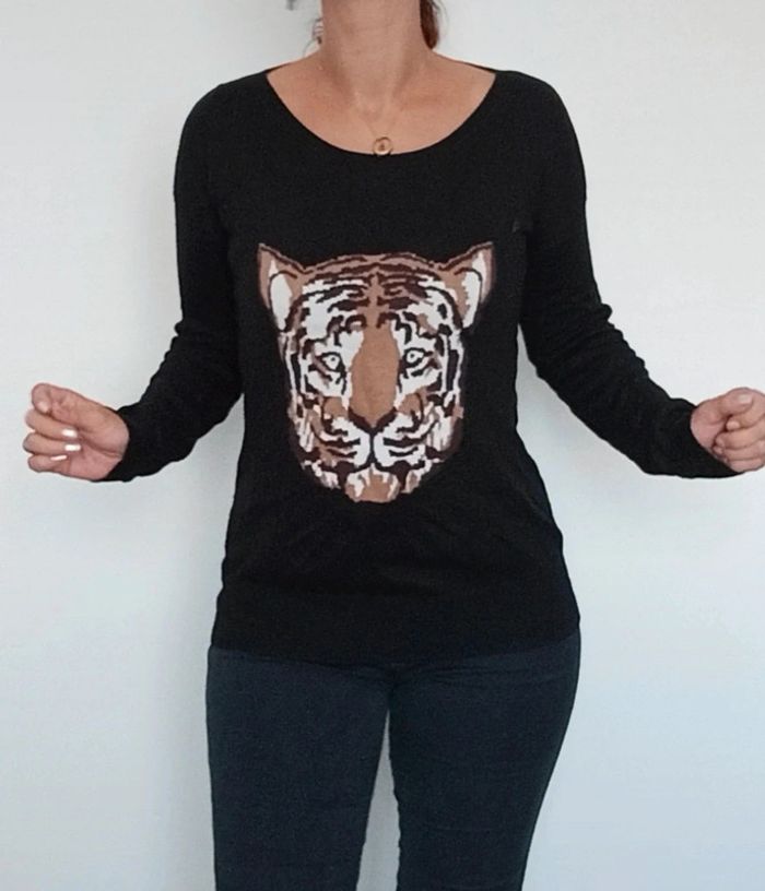 Joli pull noir casual motif tigre taille 38 - photo numéro 2