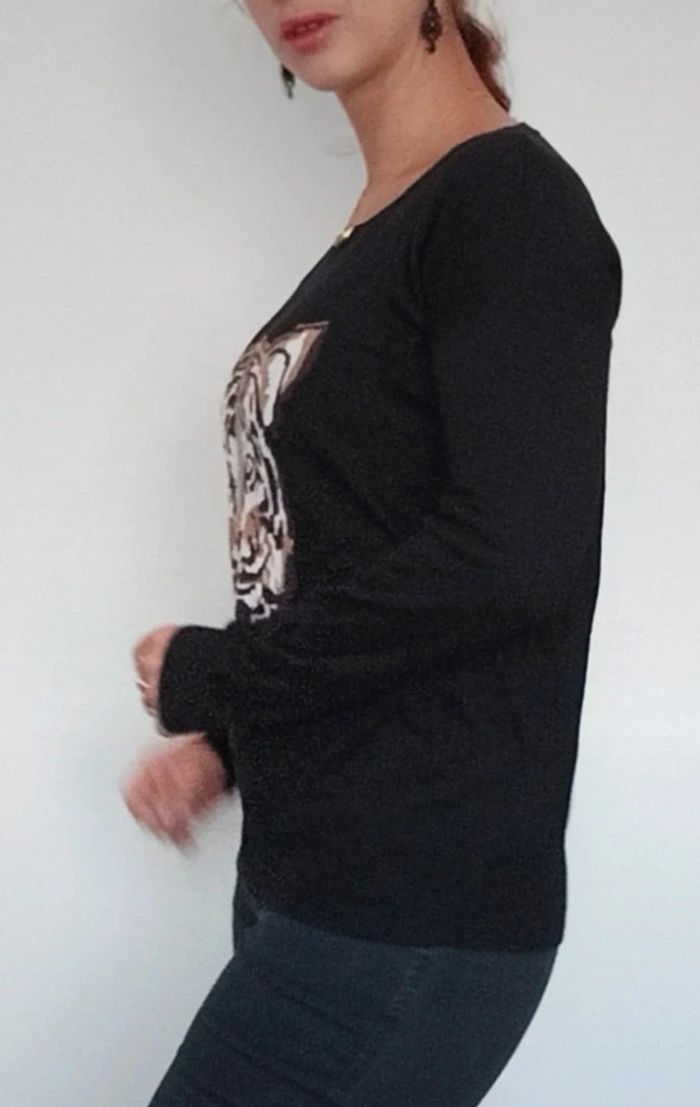 Joli pull noir casual motif tigre taille 38 - photo numéro 6
